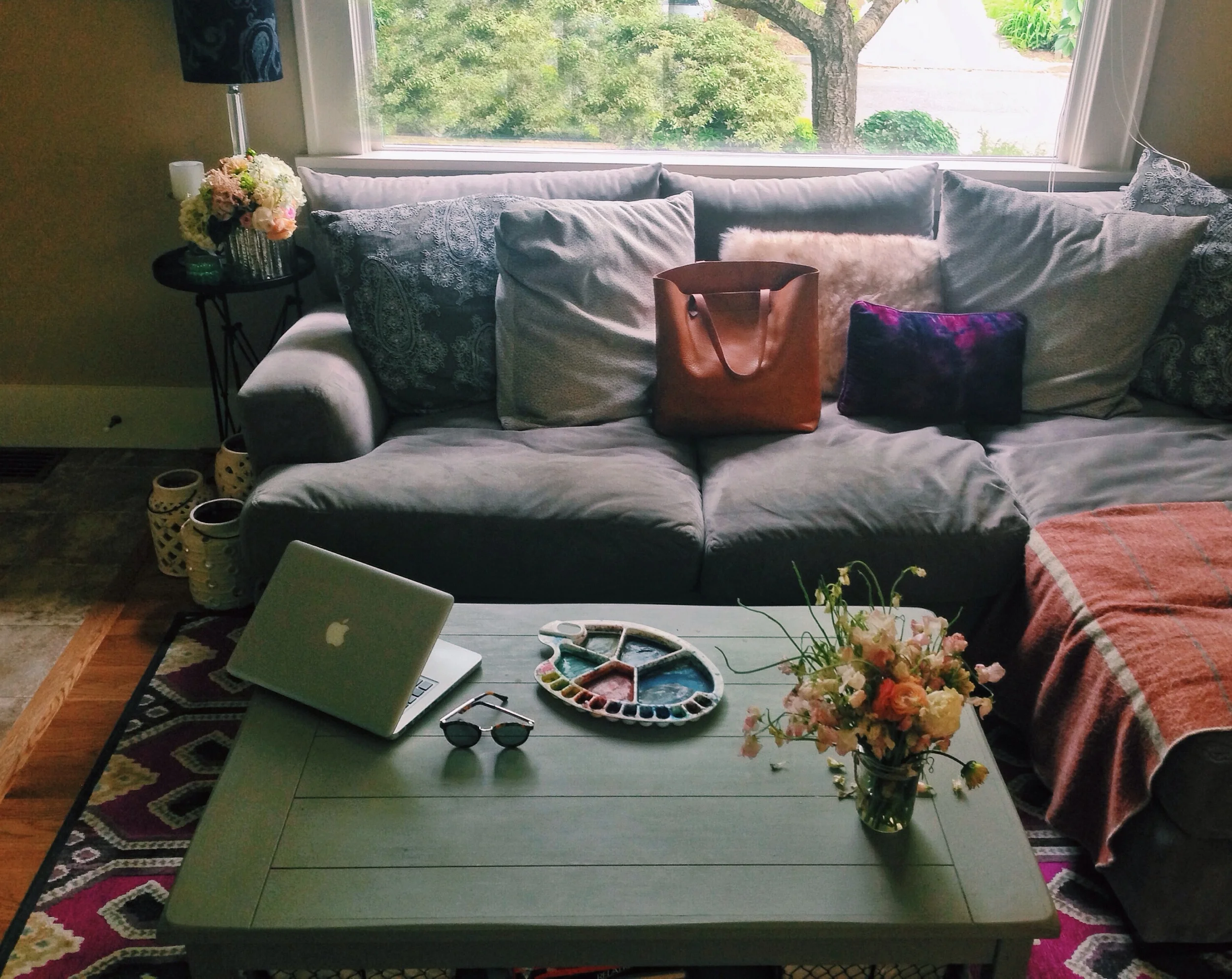 When I finally pulled up to my friend Sam's house (who I'm currently living with if you'll remember), fruit literally falling out of my backpack, I could hear soft laughter and the clinking of glasses. An outdoor dinner party. Slowly, I made my way up the driveway, and my sweaty face, hunched over from the immense weight of my groceries, made eye contact with half a dozen strangers sitting on the lawn at a table, twinkle lights cascading. Sam's friends. I stared at the Kinfolk scene before me as bruised apples rolled down the driveway. Sam delightedly introduced me to the group. I could feel sweat dripping in unmentionable places as I made some affable comments about needing a shower. Laughing off my appearance, I hurriedly parked my bike and ran inside.